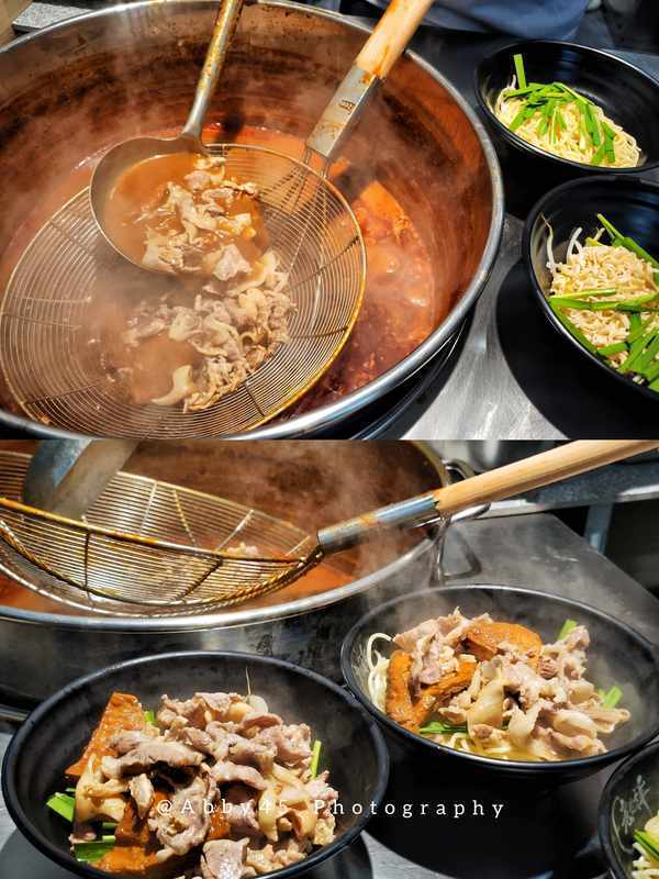 我們一起看看都有加哪些好料吧?我點的大碗25元,有豆芽、韭菜、豆幹、雪花肉、有肥腸、豬肝沿、板筋,大碗加料30元是一樣配料,但肉的分量更多。當天新鮮切雪花肉,肥瘦相間,新鮮大腸則是脆爽Q彈。18元沒有肥腸和板筋。根據個人喜好選吧。食肉族的話,強烈安利30元,那個肉比例真的很超值。