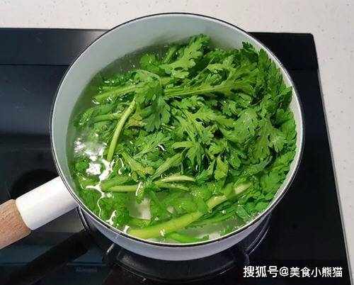 10、取出山茼蒿,用手盡量擠幹。