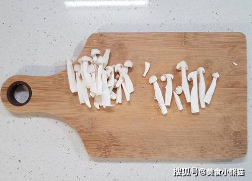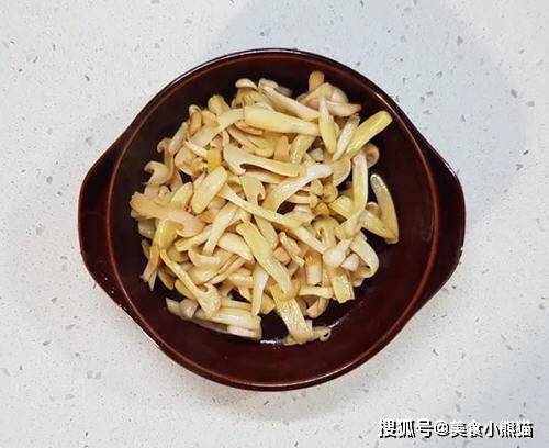 2、雪白菇撕開,切細。