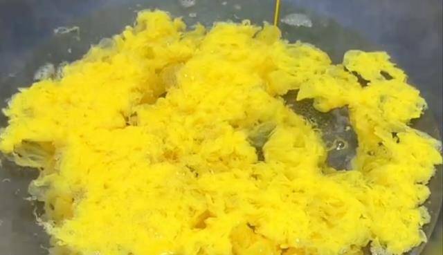 水燒開後關掉火,我們倒入攪拌好的雞蛋液(將打好的雞蛋液拉成細絲,淋入鍋中,註意雞蛋液不要淋在同一個地方,這樣才能做出既好看又鮮嫩的雞蛋花,雞蛋倒入進去後先靜置一會讓它定型)