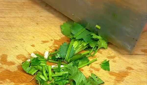 處理好紫菜後把蔥切成小段,喜歡吃香菜的可以再切一個香菜,切好後放入盤中備用