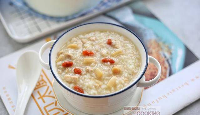 雞肉150克,枸杞1小撮,香菇1小把,瑤柱1小把,大米100克,清水適量,薑片幾片,鹽適量,醬油5克,米酒5克,胡椒粉1克
