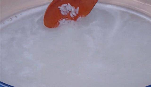 把大米放入到碗中清洗一下,大米清洗好後放入砂鍋中,再倒入清水(也可以倒入開水或者溫水),倒進大米後用勺子攪動一下,這樣煮的時候就不會粘鍋瞭