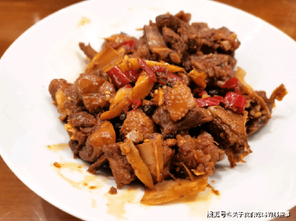 2、鍋裡倒入適量油,放入幹辣椒、薑片、蒜瓣、蔥段炒香,倒入焯過水的鴨肉煸炒一會兒,顏色金黃後淋入料酒去腥,加入生抽、老抽翻炒上色。