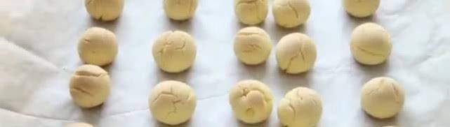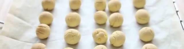 7.烤箱預熱後,先把蛋黃小面團放進去烤,然後調火上下170°烤15分鐘左右。大傢做飯的時候要時刻註意烤箱。如果烤過頭瞭,可以把溫度調低一點,或者在烤盤上鋪一層錫紙。烘烤直到小面團呈金黃色,差不多熟瞭。