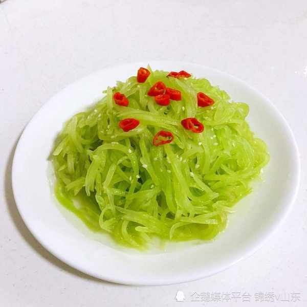 做法:萵筍切成細絲,放入開水中燙30秒左右,撈出放入冷水充分冷卻,再撈出瀝幹水分。鍋裡放少許油,把大蒜和幹辣椒放入爆香後,放白糖、鹽、生抽加熱出香味,最後淋一點香醋。將調好的醬汁淋上瀝幹水的萵筍絲上,攪拌均勻,淋上少許芝麻和芝麻油即可。