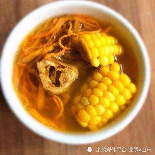 【材料】:蟲草花 1把、幹貝 12克、玉米 1根、豬骨 400克、薑 2片、鹽 適量