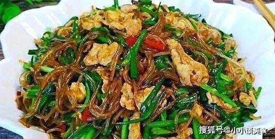 材料:韭菜1把、綠豆粉絲1卷、雞蛋2個、生抽、老抽、花椒、花椒、鹽、食用油。