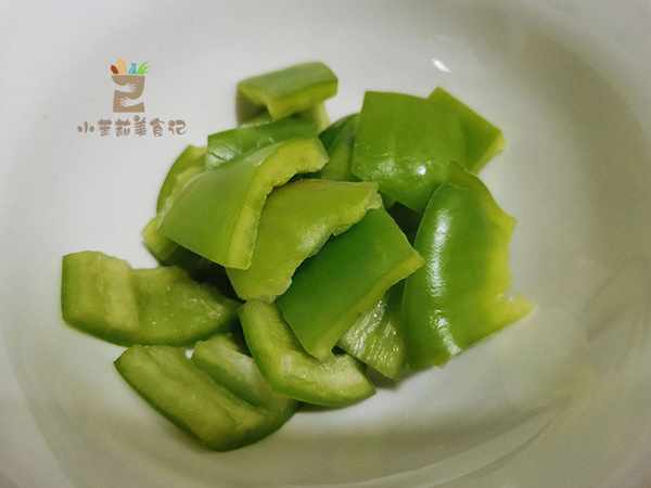 3、洋蔥與青椒是好搭檔,香味互補,搭配起來也更讓人食欲滿滿。把青椒也洗凈,掰小塊,白籽白筋的部分去掉,免得影響口感。