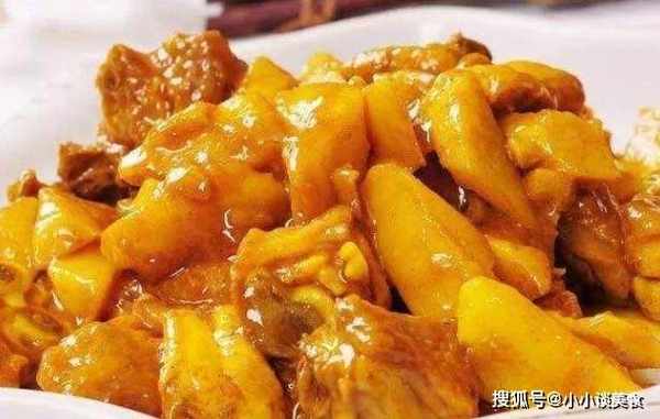 4.鍋裡放底油,放入蘋果片和薑片炒香,加入咖喱稍炒,再加入雞肉,料酒,加鹽,味精和雞高湯煮熟低熱量。