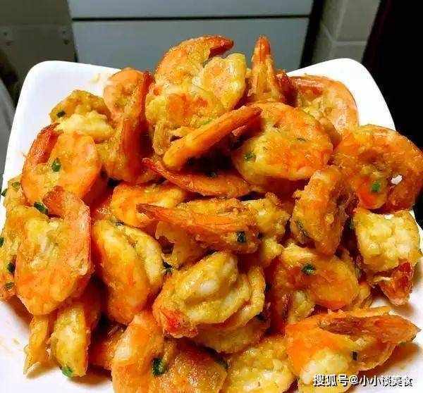 材料:蝦、咸蛋黃、鹽、料酒、香料;