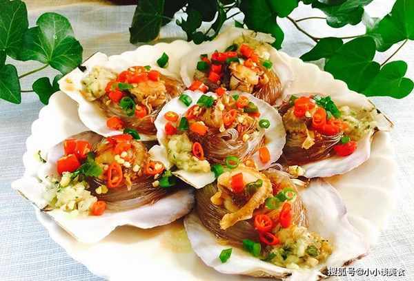 1.將貝殼洗凈,粉絲用溫水浸泡10分鐘備用。薑切小塊,蒜1瓣剁碎,小蔥剁碎;
