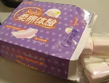 這個看包裝就是個衛生巾的包裝瞭,可是裡面竟然放的是零食,瞬間我就感覺就要崩潰瞭,這樣真的能夠拿得出手嗎?哎,大兄弟,來顆糖吃,我的天啊!這該是多嚇人的場景啊!