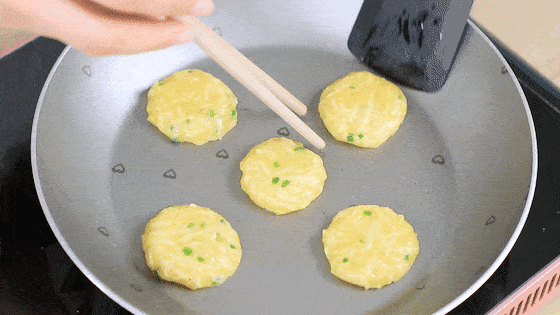 10.繼續煎6分鐘至兩面微焦,煎完裝盤,一道美味的小餅就好啦。