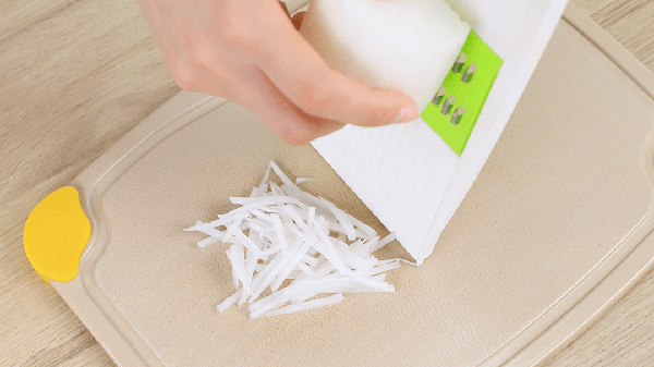 2.白蘿蔔去皮,用刨絲器刨成絲。