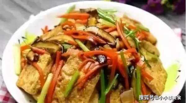 1、老豆腐切厚片,香菇、胡蘿卜切碎,芹菜切碎。