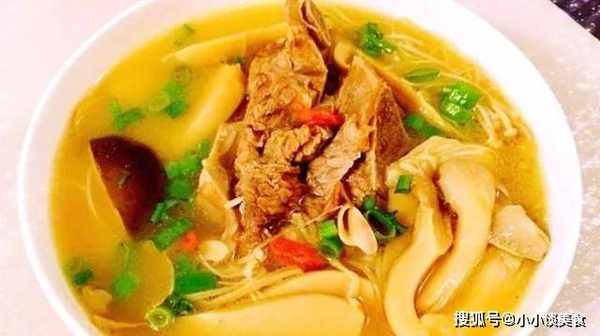 原料:牛骨、雞腿菇、金針菇等。加入自己喜歡的香菇、桂皮、藥明、八角、薑、蒜、蔥、雞精、少許鹽、少許油、少許胡椒粉。