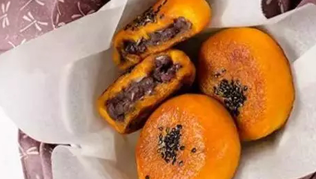 南瓜餅酥軟甜糯,香味醇厚,潤肺健脾,鎮咳化痰,適用於肺燥咳嗽、膿痰等癥。做法:南瓜洗凈,去皮去瓤,切薄片,就用蒸鍋來蒸;南瓜趁熱碾成南瓜泥,加入糯米粉;取雞蛋大小的面團,搓圓後按扁,包入適量紅豆餡,收口捏緊搓圓後按扁,做成小圓餅;將做好的南瓜餅兩面沾白芝麻;平底鍋中倒少許油,燒熱後將南瓜餅放入,中小火煎至兩面金黃即可。