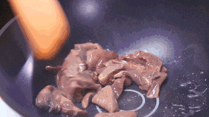 第三步、在鍋中加入適量的食用油燒熱,把豬肝放進去,將其炒至變色後就盛出來,鍋中留有底油,將辣椒放進去,炒至斷生後就加入適量的食鹽調味,隨後就把豬肝放進去,用大火翻炒均勻就可以出鍋食用瞭。