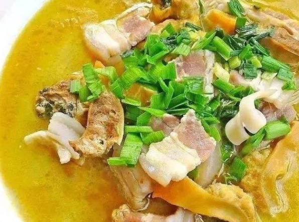 食材:河蚌、咸肉、豆腐、生薑、蔥、食用油、鹽、料酒。