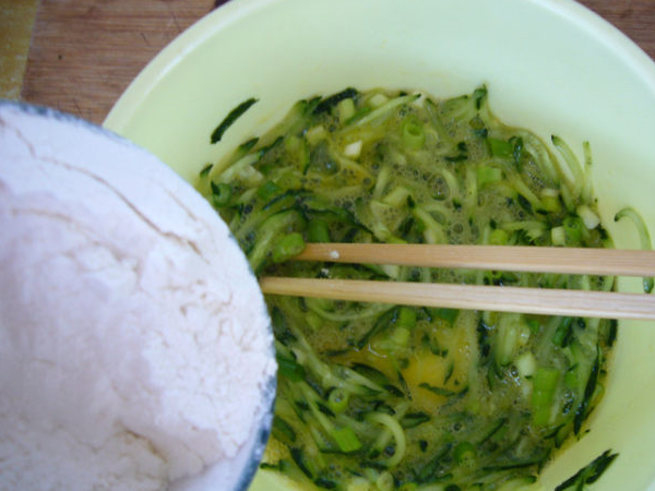 5.在加入適量的水,是面糊變成順滑的能流動的面糊