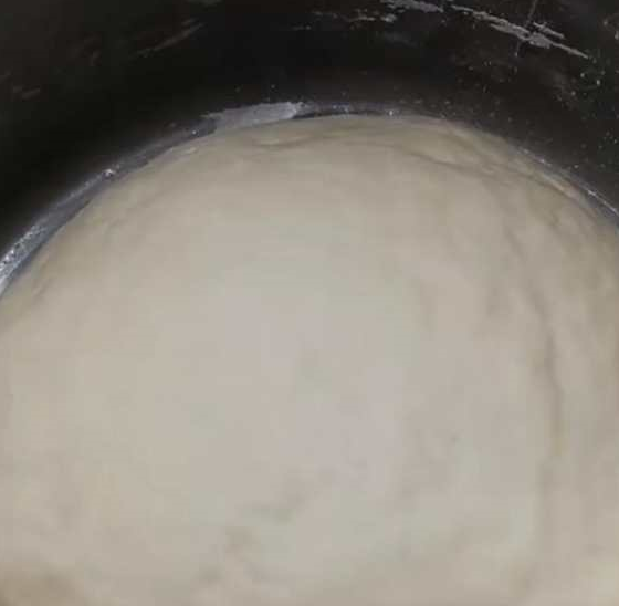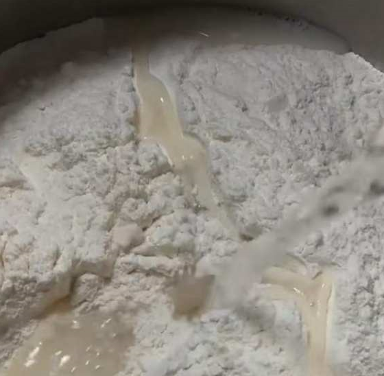 準備面粉,加入溫水,然後給攪拌成綿絮狀。