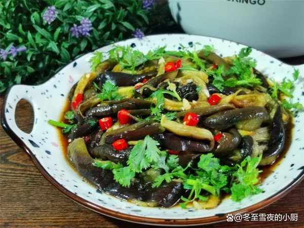 【蒜拌茄子】所需材料:茄子1斤、香菜1棵、小米辣2-3個、香油半湯匙、大蒜3瓣、醬油2湯匙、
