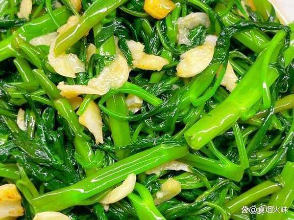 空心菜,蒜瓣,食鹽,雞精,食用油