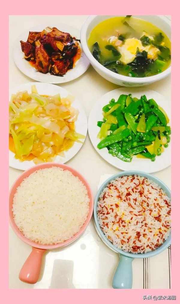 全職媽媽們,你們是不是也會為每天吃什麼發愁?每天去菜市場買菜, 卻不知道該買什麼?該做什麼? 傢有上學的孩子,我會盡量葷素搭配營養均勻,作為普通的老百姓,居傢過日子還要做到實惠美味, 傢人愛吃不剩菜不浪費,午餐發到朋友圈,朋友看後稱贊道:“雖然飯菜很簡單,但是有葷有素,這才是普通人的一日三餐。”下面一起來看看我傢的午餐吧!糖醋排骨,素炒荷蘭豆,涼拌萵筍粉皮,排骨雞蛋裙帶菜湯,雜糧米飯,大米飯,三菜一湯,有葷有素好吃不浪費