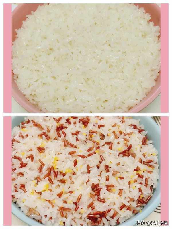 雜糧米飯是我的主食,孩子愛吃大米飯,就做瞭兩種米飯,雜糧米飯是紅米,大米,玉米椮一起煮的,吃起來很香