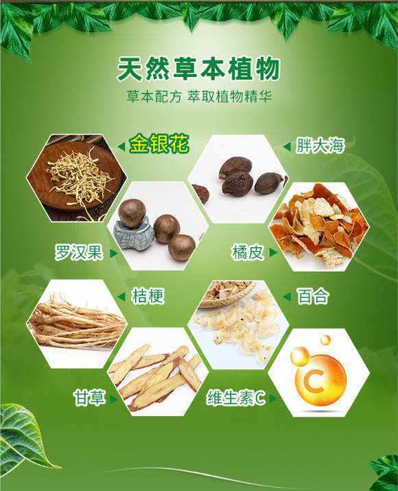 喉悅甄選草本:金銀花、胖大海、羅漢果、橘皮、桔梗、百合、甘草