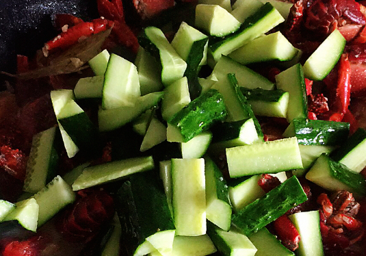 5、放入黃瓜,再煮3-5分鐘,嘗嘗咸淡,根據自己口味調味。