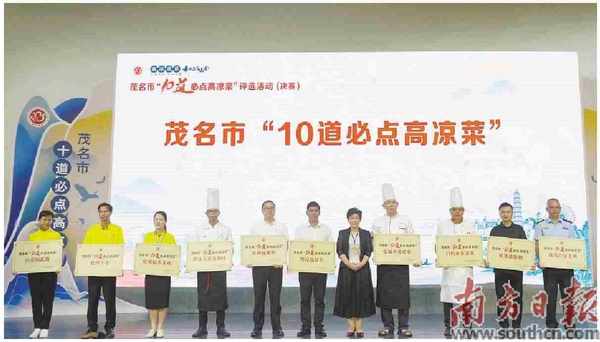 去年,茂名市啟動“10道必點高涼菜”評選活動,通過評選茂名地區具有代表性的高涼菜美食,打造一批有滋味有文化的“高涼好菜”。活動經過初賽、復賽、決賽,於5月6日評選出茂名市“10道必點高涼菜”和10道茂名市“高涼名菜”,其中來自高州的曹江頭菜蒸扣肉入選茂名市“10道必點高涼菜”,高州鹽焗雞、高州杏花村豬手、玉湖魚頭蒸天麻獲得茂名市“高涼名菜”稱號。