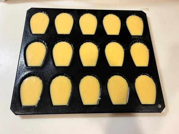 食材:雞蛋1顆、砂糖40公克、低筋面粉70公克、無鹽奶油70公克、泡打粉2公克、牛奶20毫升、蜂蜜2毫升