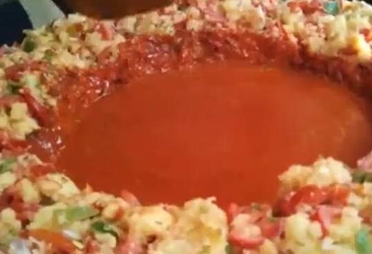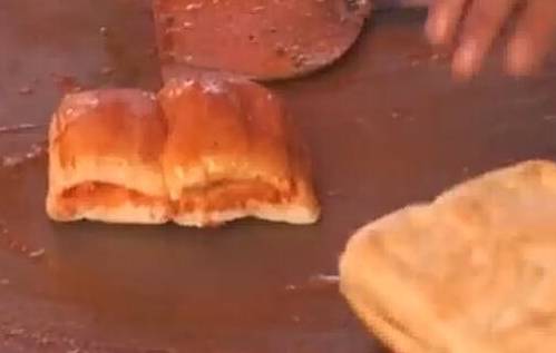 然後再放入一點番茄醬在鍋裡,用面包擦鍋,然後分成幾份,一起放入快餐盒裡。這樣的快餐就做好瞭,買的人非常多,看來每個地方的美食相差真的好大,你敢吃嗎?都說印度美食不能吃,這次真的見識到瞭。