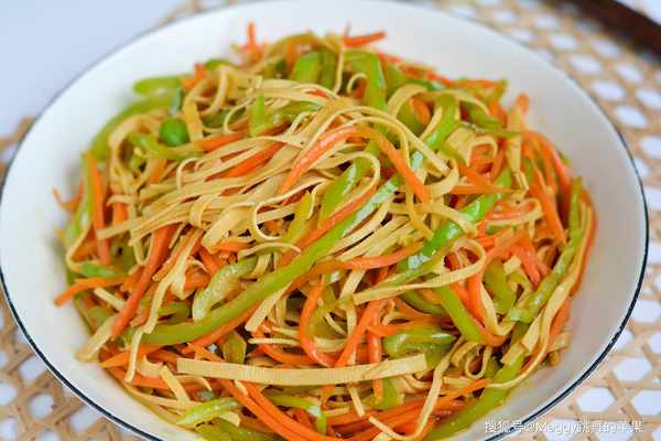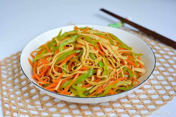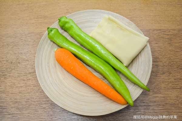 【主料】 尖椒2根,豆腐皮1張,胡蘿卜1根