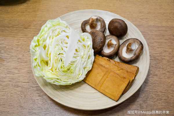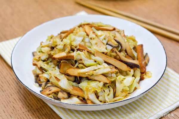 【主料】 圓白菜半個,鮮香菇5朵,豆腐幹3片