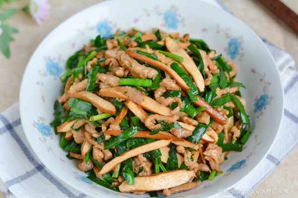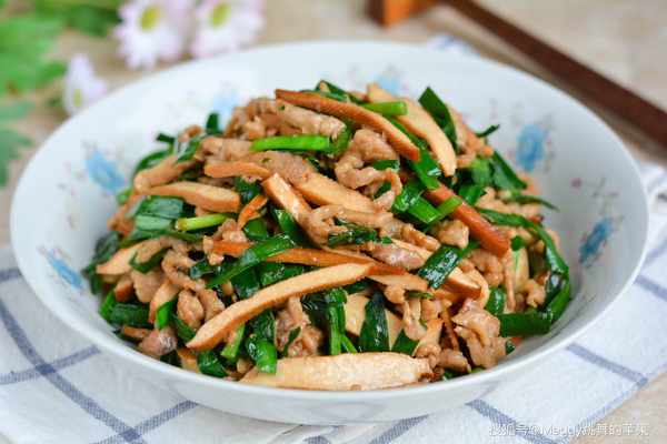 這道小菜顏色靚麗,濃鬱清香,肉絲嫩滑,有滋有味。韭菜含有一種揮發油,特別開胃;其豐富的植物纖維潤腸效果也極佳。有瞭肉絲和韭菜的加持,豆腐幹也有滋有味瞭。