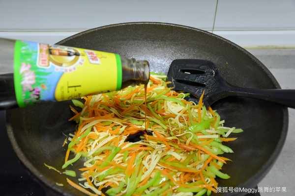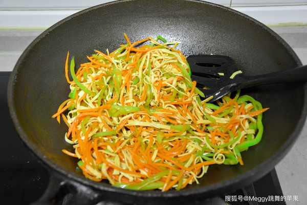 4. 胡蘿卜變軟,放尖椒絲;