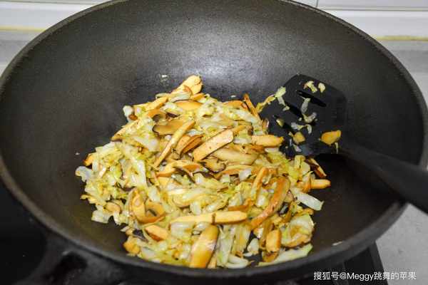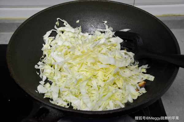 4. 放圓白菜絲,中火翻炒;