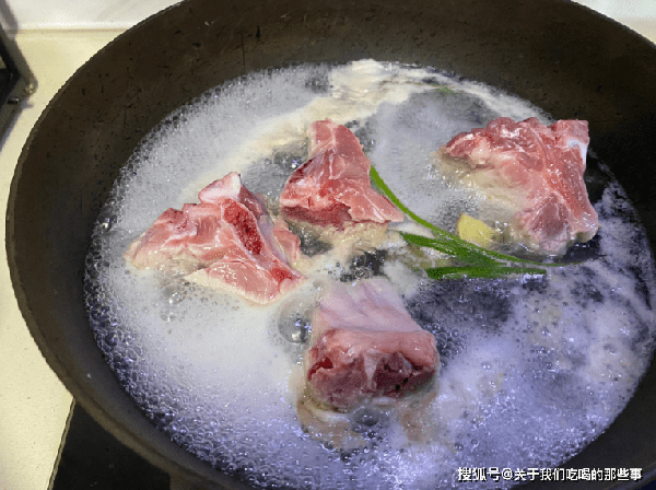 1、排骨剁成小塊,用清水泡出血水,洗幹凈後冷水下鍋,加入蔥段、薑片、料酒,大火煮5分鐘,撇掉浮沫後撈出瀝幹水分。