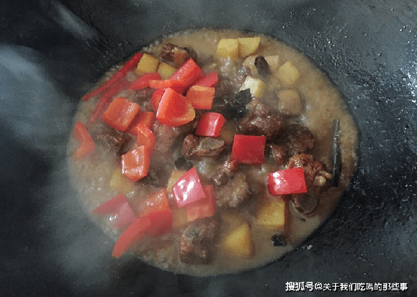 4、放入蒜瓣炒出蒜香味,倒入開水沒過排骨,煮開後小火燉40分鐘,最後10分鐘放入煎好的土豆塊,加入適量食鹽翻炒均勻,燉至土豆軟爛,轉大火收汁,湯汁濃鬱後即可出鍋。