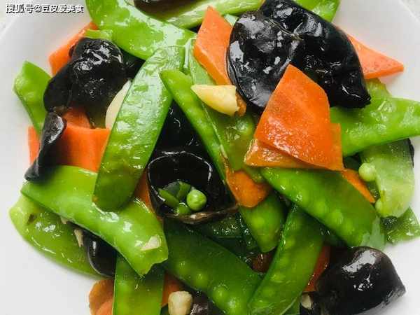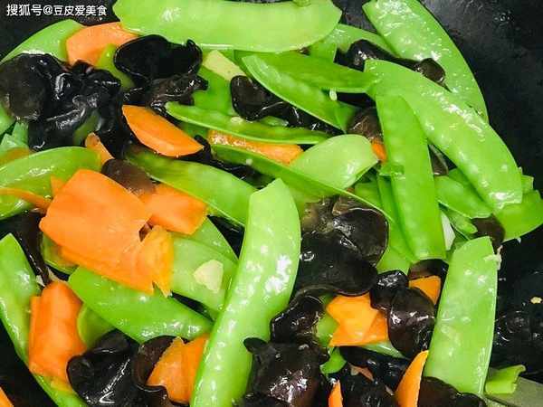 材料:荷蘭豆200克,木耳100克(泡發後的),鹽適量,胡蘿卜1根,蒜5瓣,蔥適量,薑適量,生抽適量。
