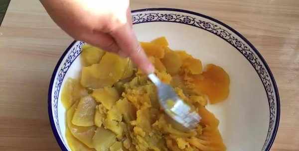 紅薯這樣簡單一做,沒想到比蛋糕還要好吃,準備兩個紅薯清洗幹凈去掉皮,切成薄片,上鍋蒸15分鐘左右,時間到取出來用叉子壓成泥放涼,加入4克的酵母,2克的鹽,5克的白糖和酵母發酵,攪一攪。