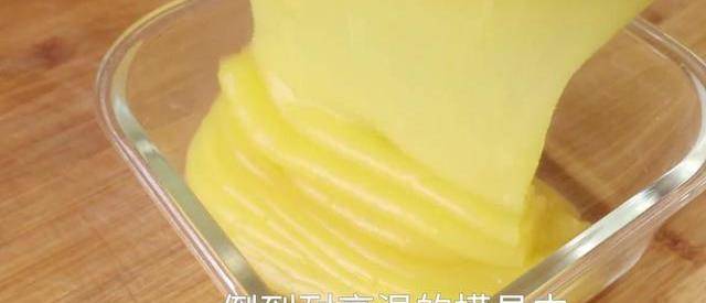 到耐高溫的模具中,用鏟子把表面抹平,放冰箱裡冷凍兩個小時,涼糕倒出來。