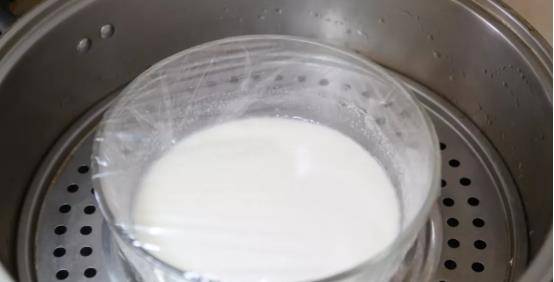 第二步:把碗用保鮮膜包起來,然後在上面用牙簽紮一些孔洞,然後放在鍋中蒸25分鐘。