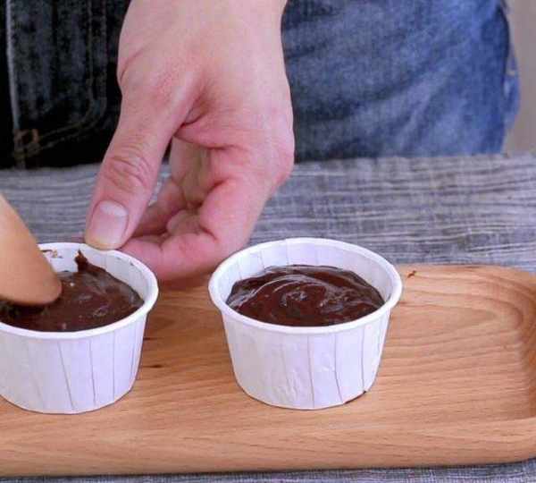 第3步、碗中磕入一個雞蛋,打散,然後倒入融化的巧克力糊中,攪拌均勻。