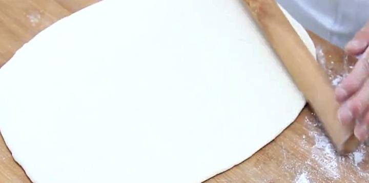 5、用搟面杖把揉好的面團搟成圓形的薄片。