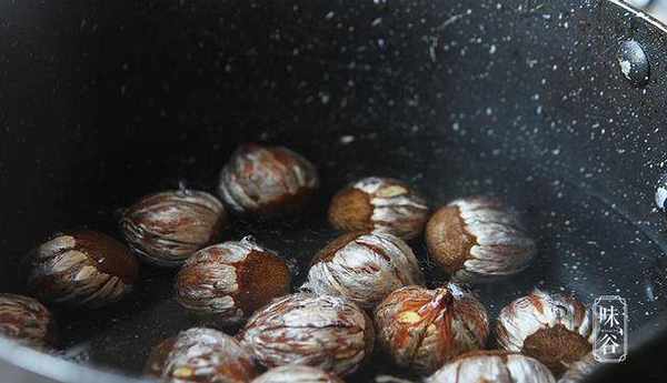 2、我買的是已經去瞭外殼的栗子,把栗子放入鍋裡水開後煮5分鐘;