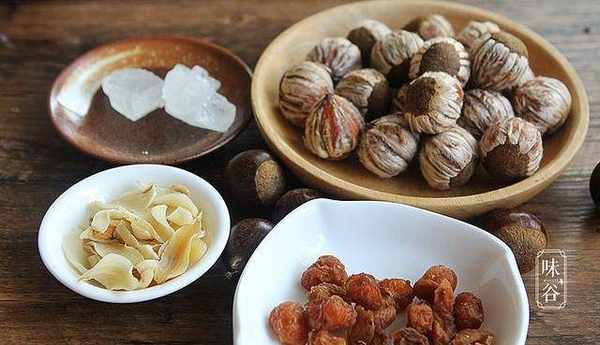 【材料】:栗子適量、百合15克、桂圓15顆、冰糖適量